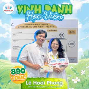 Học viên Hoài Phong đã xuất sắc đạt 890 TOEIC sau khi hoàn thành khóa học tại PMP English. Đây là kết quả của quá trình học tập nghiêm túc và tinh thần kiên trì bền bỉ.