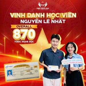 PMP English xin gửi lời chúc mừng đến Lê Nhất với thành tích 870 TOEIC ấn tượng. Chúc bạn tiếp tục giữ vững tinh thần học tập, gặt hái thêm nhiều thành công hơn nữa trong tương lai!