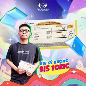 PMP English xin chúc mừng Bùi Sỹ Vượng với thành tích 915 TOEIC đầy ấn tượng. Chúc bạn tiếp tục phát triển kỹ năng và gặt hái thành công trong tương lai.