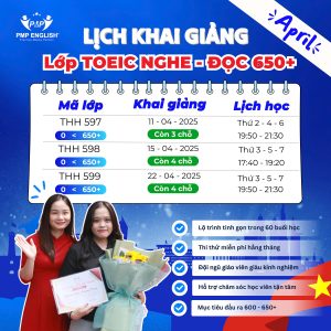 Tại PMP English, khóa học TOEIC Nghe – Đọc 650+ được thiết kế bài bản, cá nhân hóa theo năng lực người học: